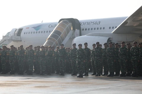 Sebanyak 504 personel Kontingen Indonesia Patriot II berangkat menuju Perancis dengan digelar Upacara Pemberangkatan sekaligus pengecekan akhir yang dipimpin Menteri Pertahanan RI Bapak Sjafrie Sjamsoeddin didampingi Panglima TNI Jenderal TNI Agus Subiyanto, dan Kapolri Jenderal Pol Listyo Sigit di Base Ops Halim Perdanakusuma, Minggu, (06/07/2025).