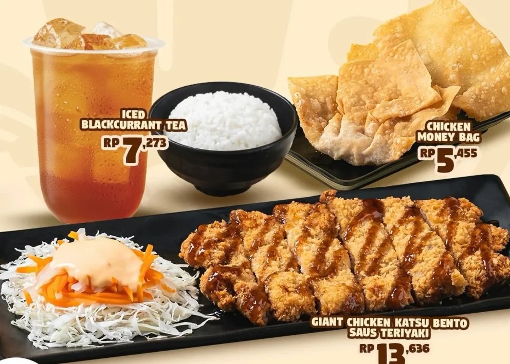 Cukup dengan budget sekitar Rp13.000-an, kamu sudah bisa menyantap Chicken Katsu Bento yang tidak hanya gurih, tetapi juga cukup mengenyangkan. Ini adalah pilihan yang sempurna untuk mengisi perut tanpa merasa bersalah karena mengeluarkan banyak uang.