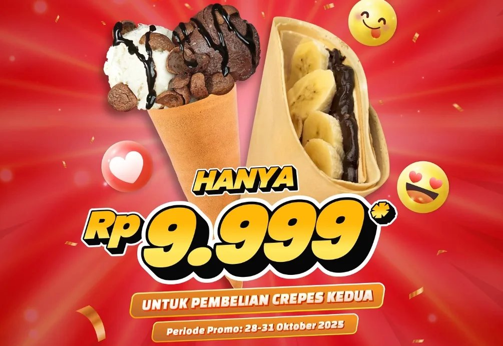 Mulai dari tanggal 28 hingga 31 Oktober 2025, selama empat hari, setiap pembelian crepes kedua bisa didapatkan dengan harga super spesial hanya Rp9.999! Ini adalah kesempatan emas untuk mencicipi berbagai varian crepes yang menggugah selera.