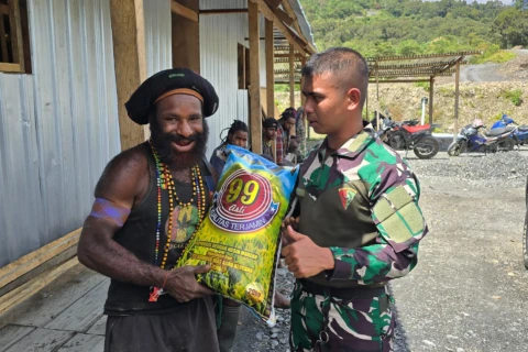 Kegiatan ini menjadi wujud nyata kepedulian TNI kepada kebutuhan pokok masyarakat yang ada di pedalaman di wilayah penugasan. Mereka menyapa warga dengan ramah, menyusuri jalan-jalan kampung dan memberikan bantuan sembako berupa beras dan minyak makan.