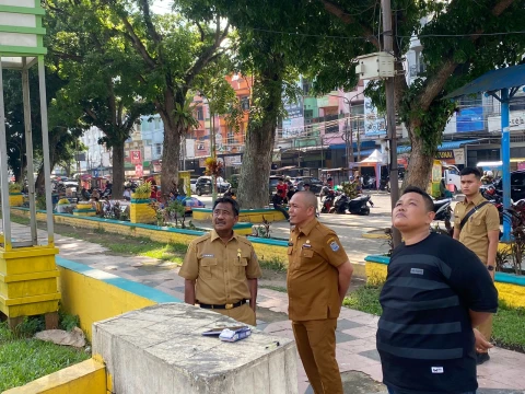 Walikota Binjai Drs. H. Amir Hamzah MAP, didampingi Plt Kepala Dinas Lingkungan Hidup (DLH) Ahmad Yani, melakukan peninjau fasilitas umum di sekitar Lapangan Merdeka Binjai, seperti lampu penerangan taman, sarana olahraga, dan Paving blok keramik, Senin (7/7) sore, sekira pukul 16:00 Wib.